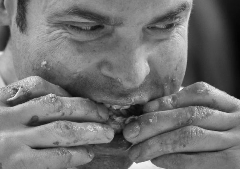 C’était vraiment un sale rêve qui mangeait avec les doigts. Gras et glouton. Il mangeait un poulet entier. La bouche énorme dégoulinait de graisse. Il commençait par la peau qu’il avalait goulûment avant de lécher consciencieusement la graisse à chacun de ses doigts boudinés. Ce bruit de succion m’horripilait. Il n’avait pas cessé de mastiquer, déglutir et pousser des petits grognements de satisfaction tout en faisant un sort au pauvre volatile pendant le récit de mon rêve. Il s’essuyait la bouche du revers de son bras, s’accordait une généreuse rasade d’un breuvage rouge sang et recommençait avec une autre partie de la carcasse. Ne pouvant détacher mes yeux de ce rêve ogresque, j’attendais qu’il finisse son repas en même temps que mon sort. Il détachait le reste de chair d’une cuisse lorsque suspendant son geste il m’adressa enfin la parole.