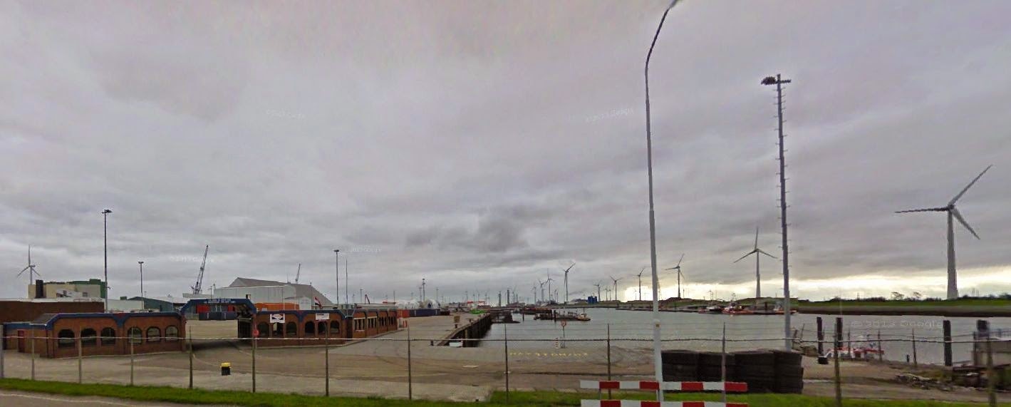 Ce serait me réveiller dans un paysage de terre, d’immenses éoliennes, de grandes grues, de hangars, de quais et d’eau grise, à Eemshaven, circuler un moment dans les allées du port, admirer, grelottant un peu en vague crainte, cet univers auquel me sentirais désespérément étrangère, avoir l’envie irréaliste d’en être, et puis regagner la route, traverser Uithuizermeeden, sourire à la sirène qui nous accueillerait au centre d’un rond point, à l’entrée dans le village, sirène que nous retrouverions sur le mur de quelques maisons, et à Uithuizen, dormir sous une frise d’écureuils et de coeurs réservée à ma seule chambre… ne sais ce qui figurerait sur les murs de celle du chauffeur, j’ai oublié de le demander.