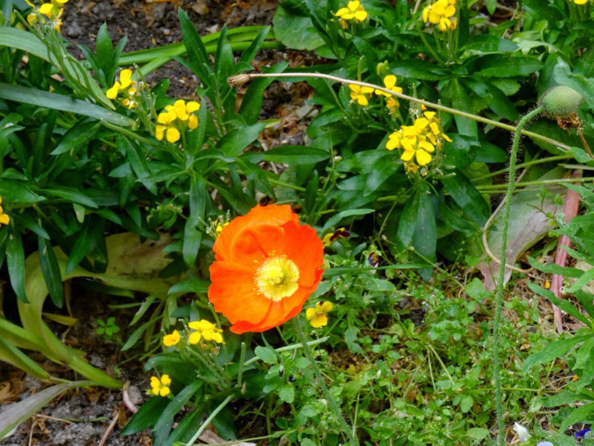 Des fleurs jaunes, un désordre vert,