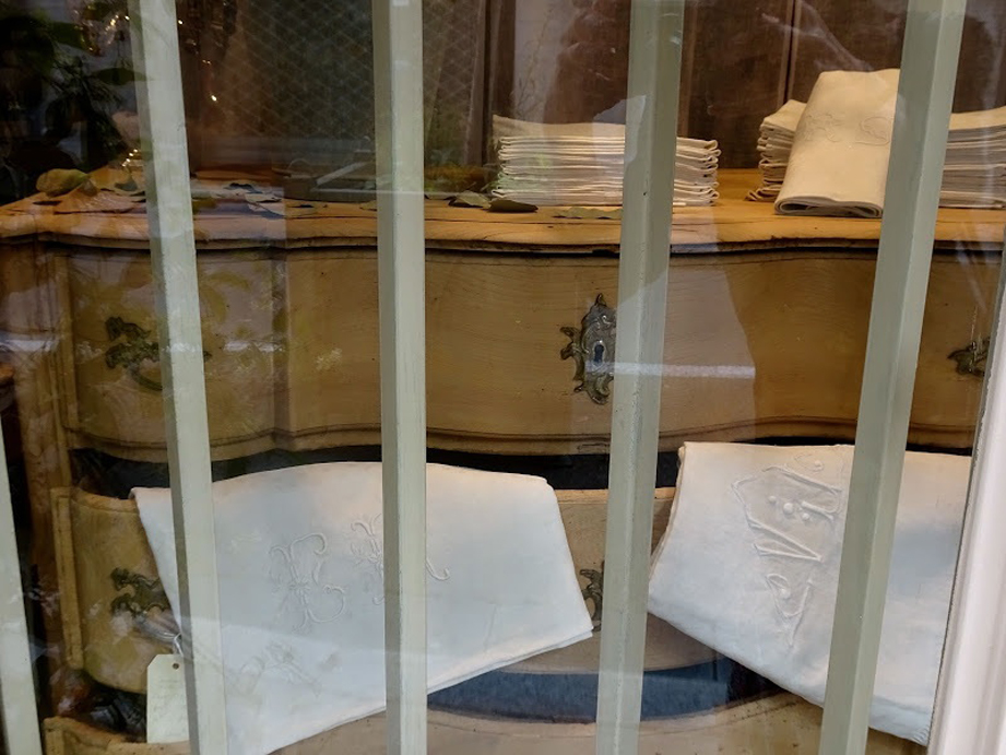 S’ajouteraient bien entendu des services de tables damassés, brodés, ou autres – quelques nappes de dentelle ancienne, quelques nappes d’indienne fleurie, alsaciennes ou provençales – des couvertures moelleuses et légères, des draps et serviettes de bains de toutes tailles en éponge épaisse ou en nid d’abeille. Mais le principal ce seraient les draps….