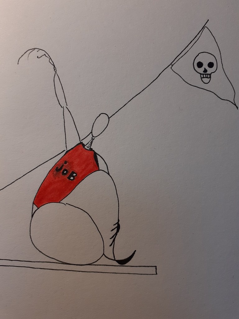 Il y a dans ce nouveau recueil graphique de Charles-Eric Charrier une poésie et une grâce évidente. Des personnages qui semblent danser ou s’échapper, fuir ou lutter, à moins qu’ils ne se contentent d’exister. Des présences d’une rare puissance. Un seul mot habite le recueil : job. Un mot accompagné d’une tête de mort. Et cela souligne le contraste saisissant qui anime les dessins, entre le noir et le blanc, les rondeurs apaisantes et les angles durs. La vie et la mort encore et toujours. La pesanteur et l’équilibre.
