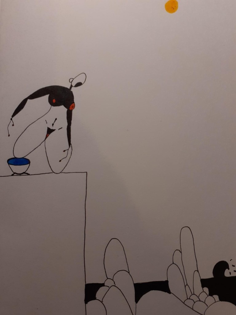 Avec cette série de « dessins écrits », Charles-Éric Charrier donne à ses personnages et paysages une dimension quasi sculpturale. Sans retrancher la grâce aérienne qui traverse l’ensemble, souligné par une poésie frôlant les éclats de Beckett ou de Ionesco, Charles-Éric Charrier explore les contraires. La pesanteur, la gravité, la fragilité et la résistance. Ces figures, mains dans les poches, bras pointés vers le ciel, semblent transcender le quotidien, se jouer des contraintes et de la laideur. Pour se réfugier dans les arcanes de l’amour, cette mise à nu salutaire. Et se perdre volontairement dans les méandres d’un univers mental de plus en plus maîtrisé, de plus en plus beau et abouti. Une sorte d’ascèse, de regard spirituel posé sur le monde. Sur l’amour, éternel refuge – mais combat aussi – contre les vents mauvais de l’existence.