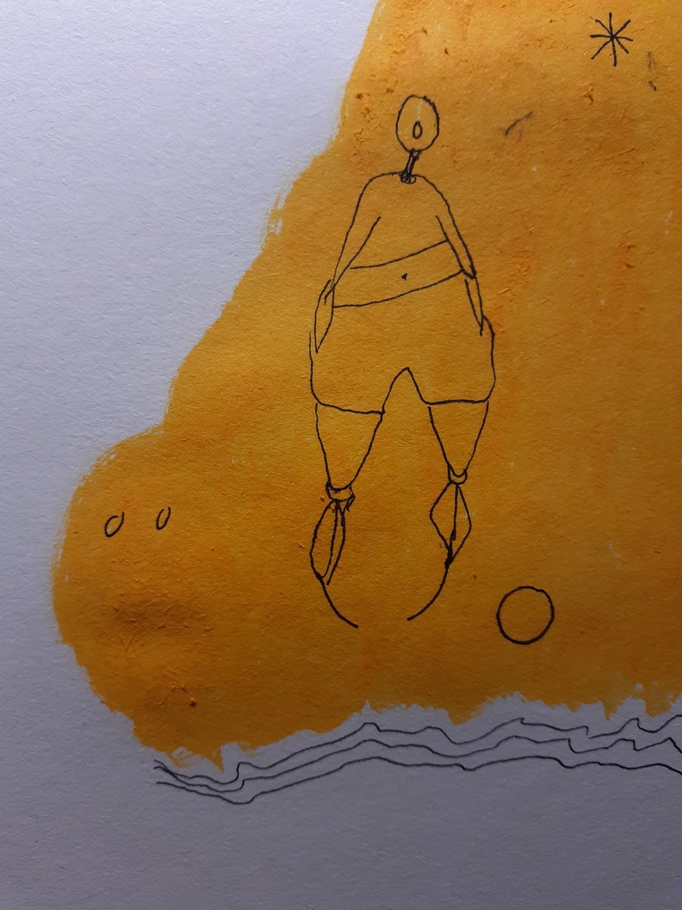 Jaune est un poème à lui tout seul. Monochrome mental, il se pose sur les dessins de Charles-Eric Charrier, comme un fil conducteur, que l’on suit d’une page à l’autre. Un astre, un aplat, un ballon, un rocher, la lumière derrière une porte, une simple forme. Il accompagne, souligne, dessine, révèle ou accentue. Et ce jaune, « graphème-couleur » donne presque vie à une langue, musicale et colorée.