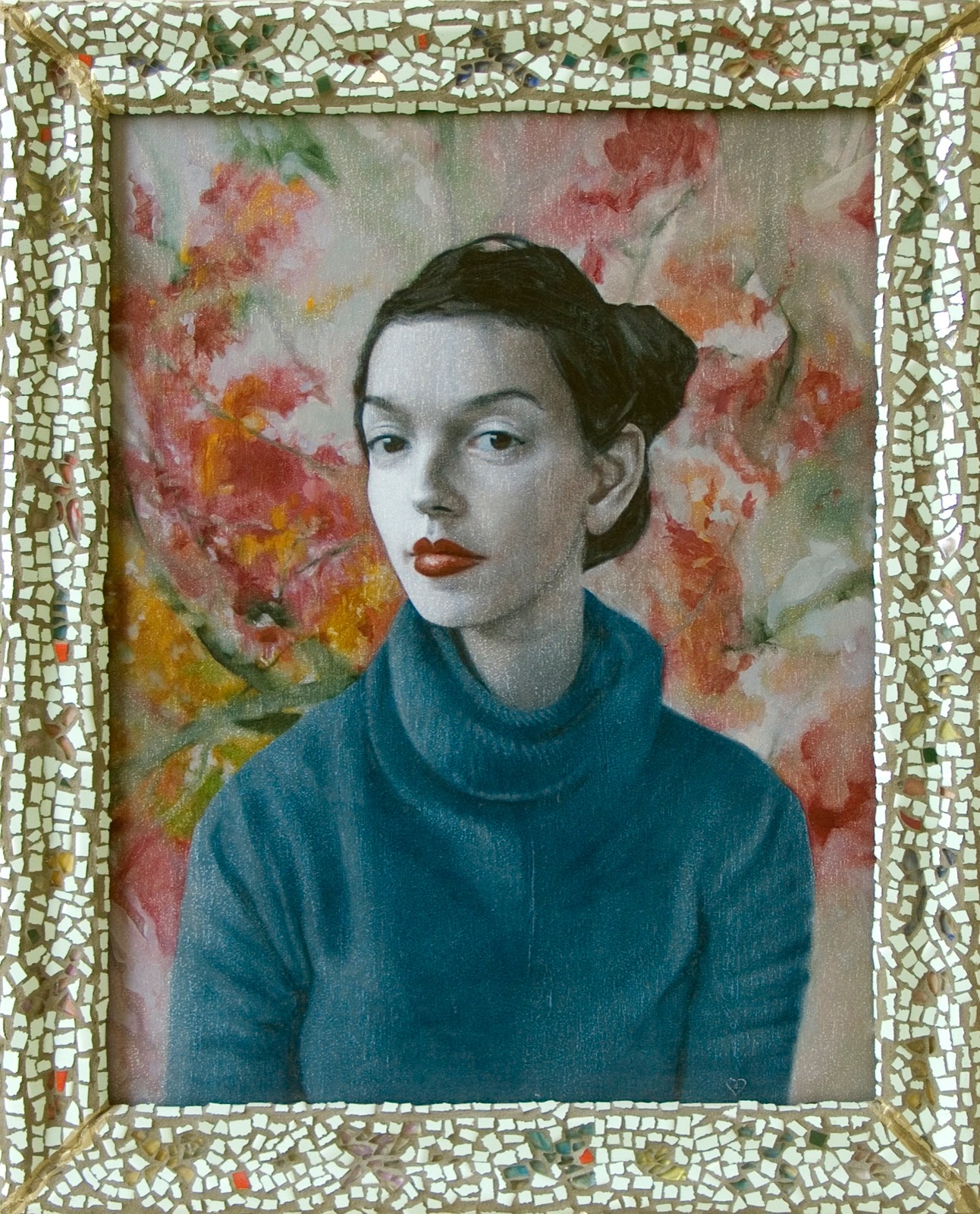 Il n’est pas naturel de penser même à un autre cadre lorsque nous sommes tellement absorbés par celui-ci. Toutes les distractions habituelles sont oubliées, et nous sommes très alertes. Forts d’une conscience accrue. C’est être littéralement arraché à une vie pour être déposé dans celle que nous avions appris à ignorer — détourner les yeux de l’écran de cinéma et réaliser que nous sommes dans une salle bondée, voir la silhouette du public devant nous, puis se retourner et apercevoir des visages bleus illuminés qui regardent vers le haut avec espoir — être pleinement conscient pour la première fois depuis peut-être l’enfance, quand la réalité était sans filtre. On voit le bleu du projecteur partout maintenant. Les jeunes artistes semblent toujours avoir une phase où ils peignent des visages bleus ou étudient les yeux sous un autre angle.