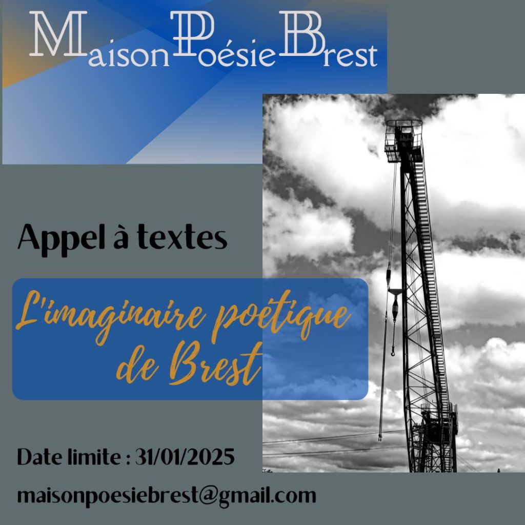 Envoyer vos textes à l’adresse mail suivante : maisonpoesiebrest@gmail.com, en précisant en objet « Appel à textes ». Vos textes (poèmes et textes courts poétiques en prose) au format doc. ou rtf. Les auteur.e.s retenu.e.s seront bien évidemment prévenu.e.s dans les règles de l’art…